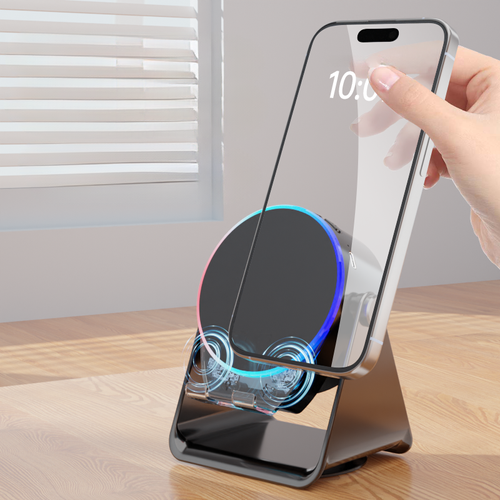 Portable Induction Phone Stand with Bluetooth Speaker – 360° Rotatable, Proximity-Sensing Audio Holder for On-The-Go Convenience